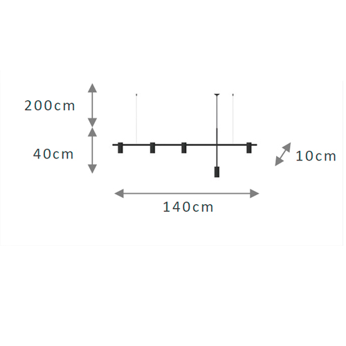 O pendente possui um tamanho de 140x40cm, o que o torna uma peça de destaque em qualquer espaço. O cabo tem um comprimento de 2,00m, permitindo que a luminária seja instalada em diferentes alturas, de acordo com a necessidade e o design do ambiente.
