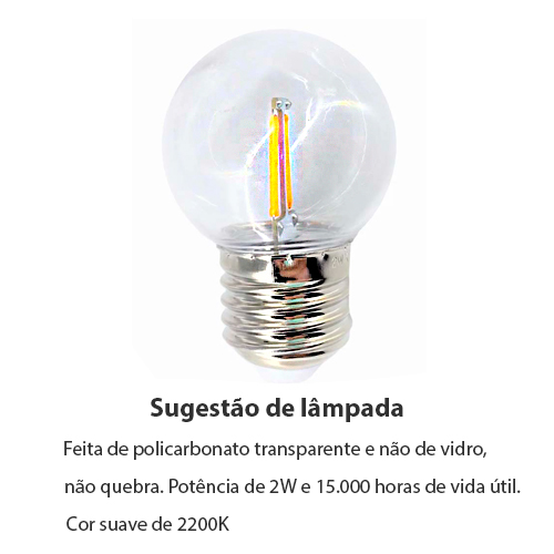 OBS.: Não acompanha Lâmpada, Fios ou Soquete