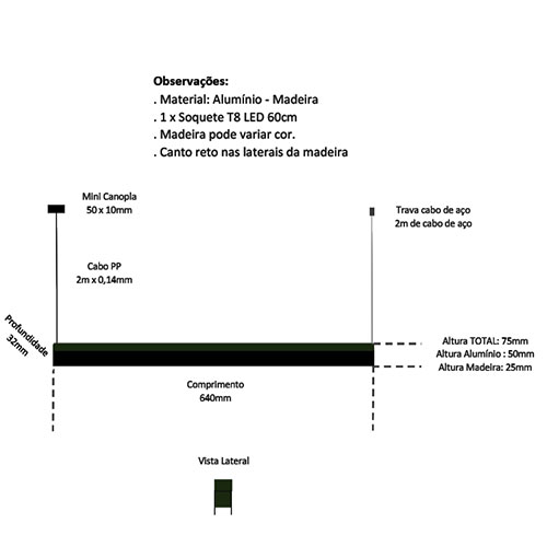 Modelo: Pendente Linear LED Metal e Madeira 60cm ou 1,20m