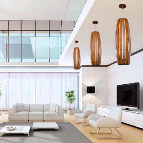 Material: Corpo em Madeira, Difusor em Acrílico leitoso(evita ofuscamento) e Cabos de Aço