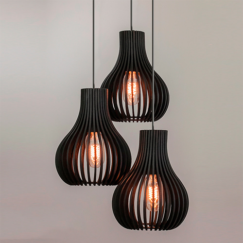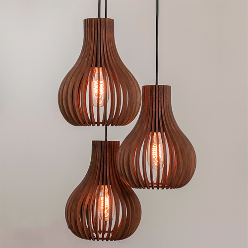 Modelo: Pendente Madeira Globo Pequeno Triplo