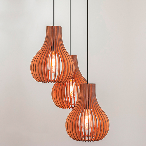 Fabricado em madeira natural multilaminada, este pendente é uma obra-prima de artesanato nacional. Disponível em diversas cores, incluindo Imbuia, Nogueira, Preto, Branco e Nanquim, ele se adapta facilmente a diferentes estilos de decoração, proporcionando versatilidade e elegância.