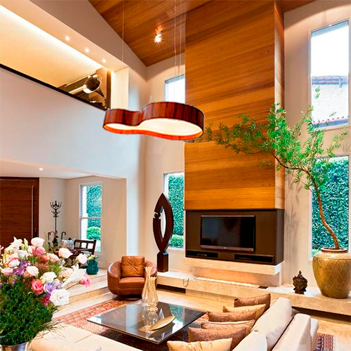 Material: Corpo em Madeira, Difusor em Acrílico leitoso(evita ofuscamento) e Cabos de Aço