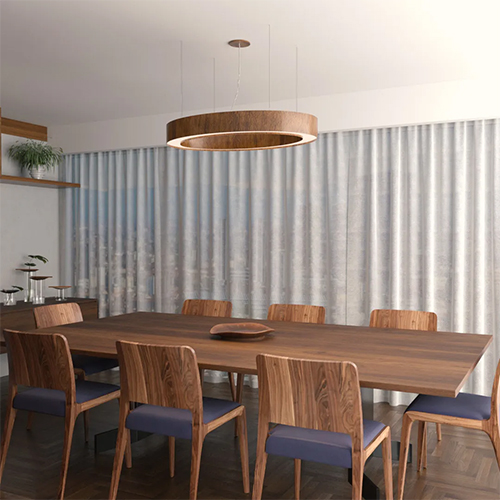 A madeira, como principal elemento, confere ao pendente uma estética aconchegante e ao mesmo tempo sofisticada, tornando-o uma excelente escolha para diferentes estilos de decoração. O formato oval vazado dá leveza à peça, permitindo que a luz se difunda de maneira agradável, proporcionando uma iluminação uniforme e acolhedora. Além disso, o design vazado agrega valor estético, criando um jogo de luz e sombra que adiciona dinamismo ao ambiente.