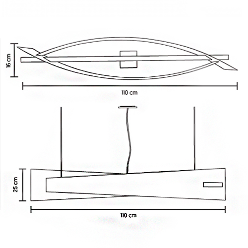 Material: Lâmina natural de madeira, Acrílico, Cabos de aço, Aço carbono, Fita de LED integrada 1x driver alojado na canopla ou forro