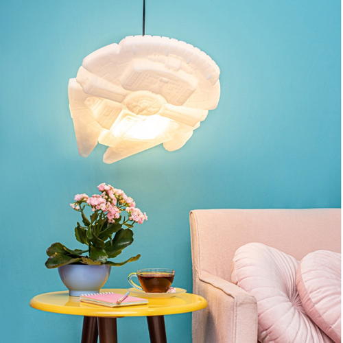 A luminária pendente Millennium Falcon era a peça que faltava para completar a alegria dos fãs de Star Wars. Uma versão perfeita, linda, detalhada e iluminada da icônica nave de Han Solo.