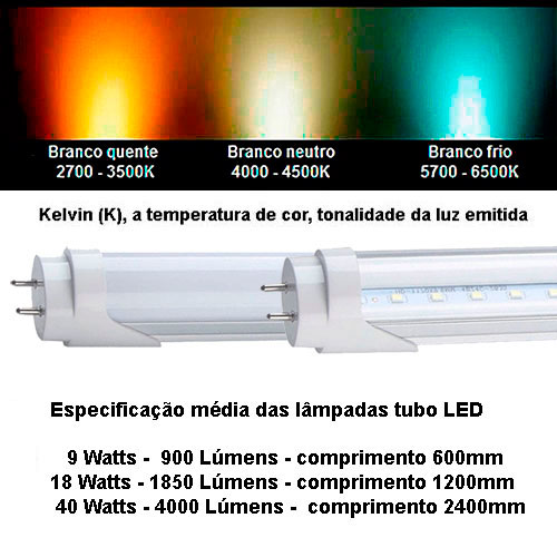 Lâmpada: 1x Tubular T8 9W LED – Branco Quente(3000K) ou Branco Frio(6000K) (NÃO INCLUSO)