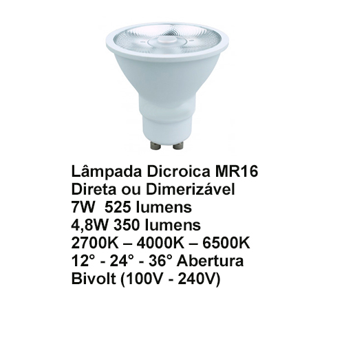 Lâmpada: 1x Dicroica Gu10 LED – (NÃO INCLUSO)