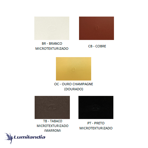 Disponível nas Cores: Branco com Ouro Velho / Branco com Cobre / Preto com Ouro Velho / Preto com Cobre / Tabaco com Ouro Velho / Tabaco com Cobre