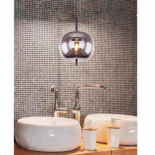 O pendente TRÊS redondo é um acessório de iluminação feito de metal e vidro. Sua cor predominante é preto, enquanto o vidro apresenta um tom fumê. O pendente possui um soquete E27, que é compatível com lâmpadas de LED. No entanto, a lâmpada não está incluída na embalagem.