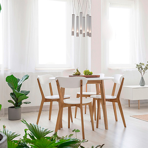 Além de sua funcionalidade e eficiência energética, o pendente ÁGUA também se destaca como uma peça de design impressionante. A combinação do metal niquelado branco com o vidro transparente confere ao pendente uma estética elegante e contemporânea. Quando aceso, a luz emitida pelas lâmpadas LED cria reflexos e brilhos sutis no vidro, adicionando um toque de sofisticação e beleza ao ambiente.
