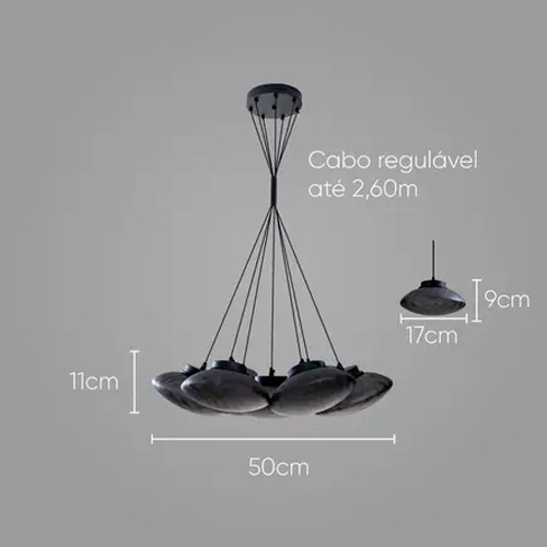 Modelo: Luminária de Teto Pendente PETRA 7 Cúpulas