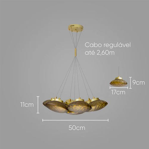 Modelo: Luminária de Teto Pendente PETRA 7 Cúpulas