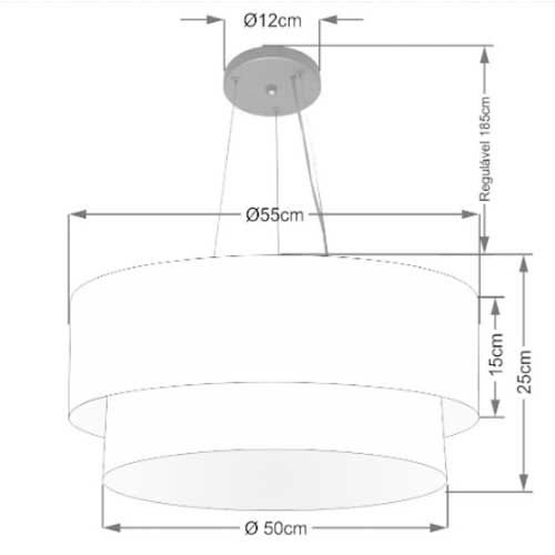 Material: Estrutura em Aço e Alumínio, Cúpula em Tecido e Difusor em Acrílico