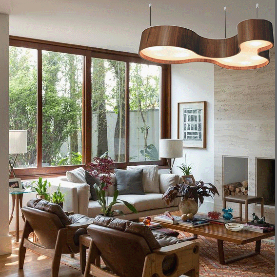 Material: Corpo em Madeira, Difusor em Acrílico leitoso(evita ofuscamento) e Cabos de Aço