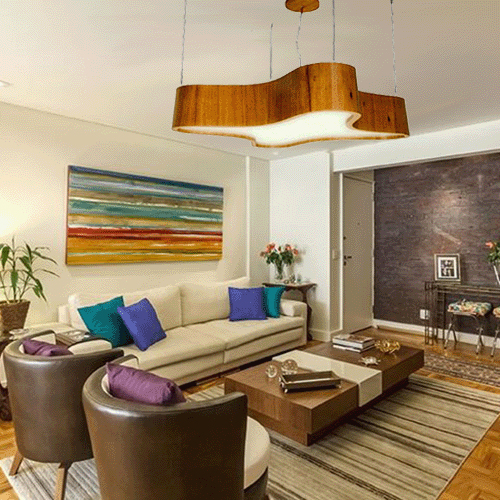 Material: Corpo em Madeira, Difusor em Acrílico leitoso(evita ofuscamento) e Cabos de Aço