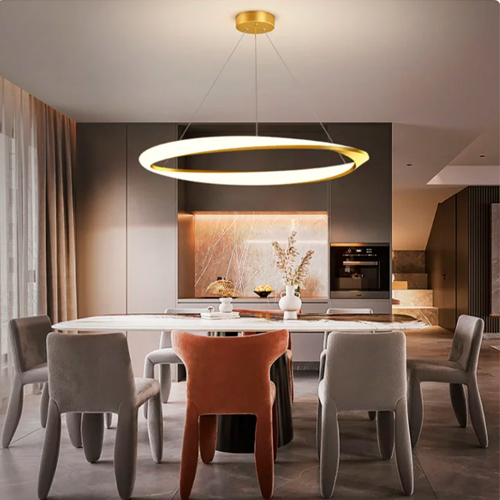 O Pendente WAVE possui um diâmetro de 600mm (Φ600), tornando-o uma opção versátil para diversos tipos de cômodos. Disponível nas elegantes cores preto e champanhe, este pendente se destaca visualmente, complementando a estética do ambiente.