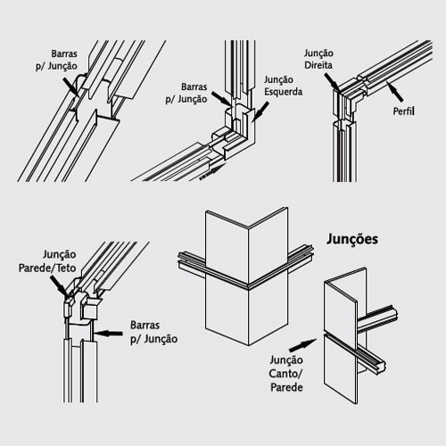 Junção no Frame Infinity Teto/Parede: 15cm.
