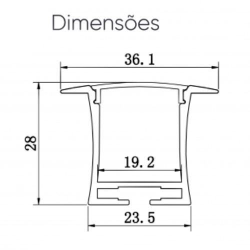 Perfil Embutir 36mm Dimerizável a alimentação é de 24v com um driver externo. Suas dimensões compactas (A:3.5 / L:5.5 cm) permitem sua instalação discreta e personalizada, com emenda a cada 2,5 metros.