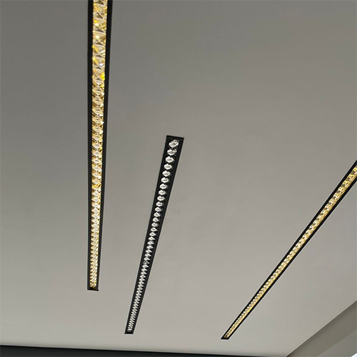 Iluminação Residencial: Use o perfil para criar uma iluminação suave e elegante em salas de estar, quartos, salas de jantar e áreas de entretenimento. Os cristais adicionam um toque de luxo à decoração.