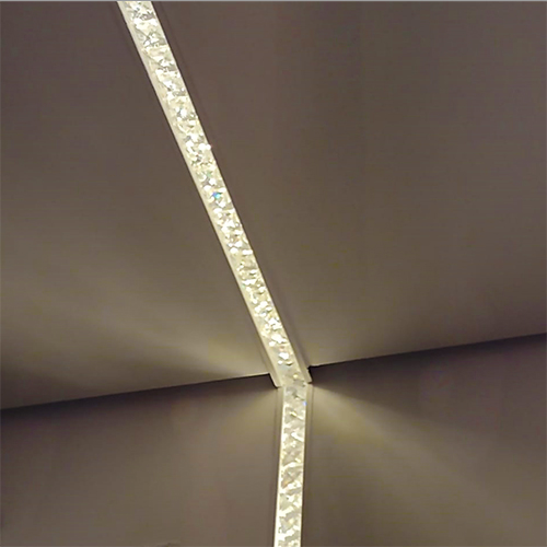 O Perfil de LED Integrado com Cristais Embutir é uma estrutura cuidadosamente projetada para acomodar fitas de LED e cristais de forma elegante e eficaz. Sua forma linear e design minimalista permitem que ele se integre perfeitamente em diversos ambientes e estilos de decoração, adicionando um toque de luxo à iluminação. Este perfil é especialmente concebido para ser embutido em superfícies como gesso, drywall e madeira, proporcionando uma iluminação suave e envolvente.