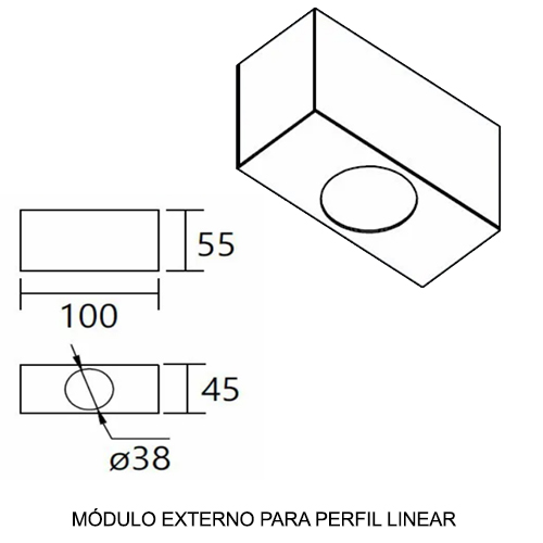 Difusor PSAI Fosco Perfil: Este perfil possui dimensões de 64cm ou 124cm de comprimento, com uma altura de 5,5cm e uma largura de 4,5cm. A iluminação é feita com lâmpadas T8 de 60cm ou 120cm, ou fita LED.