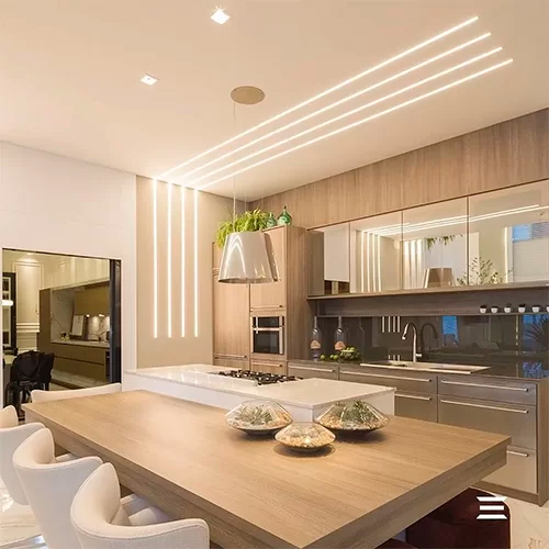 O Perfil Embutir Wood 16mm é um produto versátil e sofisticado que oferece diversas possibilidades de iluminação para ambientes internos. Ele é projetado para ser embutido no teto ou na parede, adicionando um toque elegante à decoração do espaço.