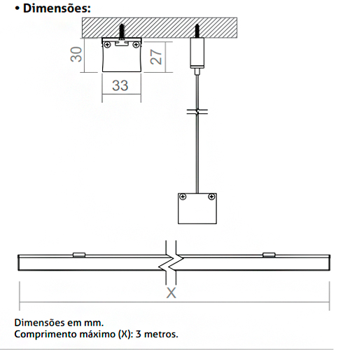 Material: Corpo em alumínio extrusado e Difusor translúcido em PMMA extrusado