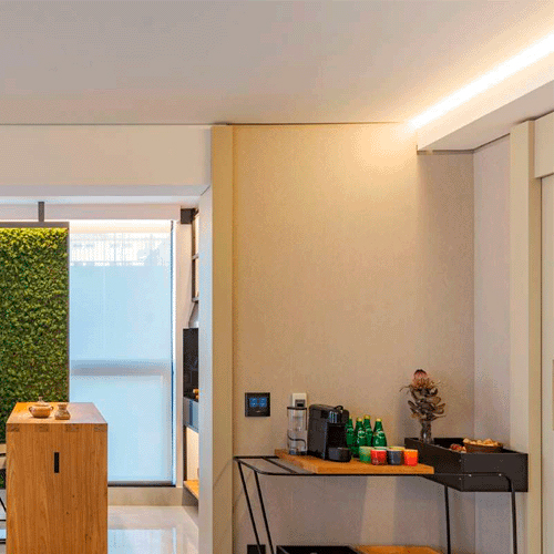 Perfil rodateto reto possui grau de proteção IP20 e é indicado apenas para ambientes internos, como cozinha, quarto, sala, hall, lavabo, closet, varanda, corredores, banheiro, mobiliário, armários, closets, escadas, restaurantes, pubs, hotéis, teatros e similares.