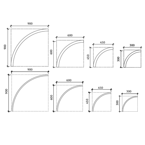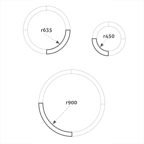 Cada curva tem uma potência de 18W ou 36W por metro, e as medidas disponíveis são 900mm, 600mm, 450mm e 300mm. A possibilidade de cortar sob medida oferece flexibilidade na instalação.