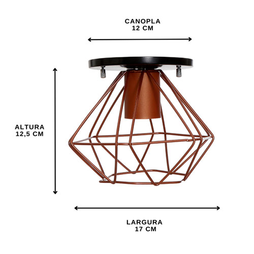 Plafom Aramado Diamante é uma peça que alia estética contemporânea, originalidade e funcionalidade, criando uma presença marcante nos ambientes onde é instalado. Seu design geométrico e bem estruturado remete à lapidação de uma pedra preciosa, oferecendo um toque artístico à iluminação, que se torna não apenas um elemento funcional, mas também decorativo. Com seu aspecto moderno e levemente industrial, é ideal para quem busca dar personalidade a espaços internos, seja em residências ou ambientes comerciais.