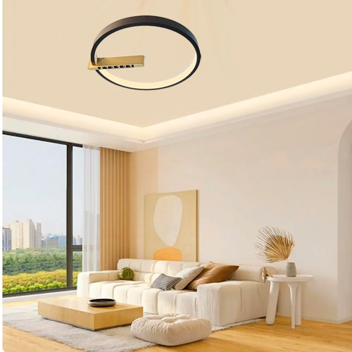 A estética do Plafon BYTE é aprimorada por uma paleta de cores sofisticada: preto e dourado. Essas cores clássicas se complementam, criando uma peça que não apenas ilumina, mas também se destaca como uma obra de arte na decoração de interiores.
