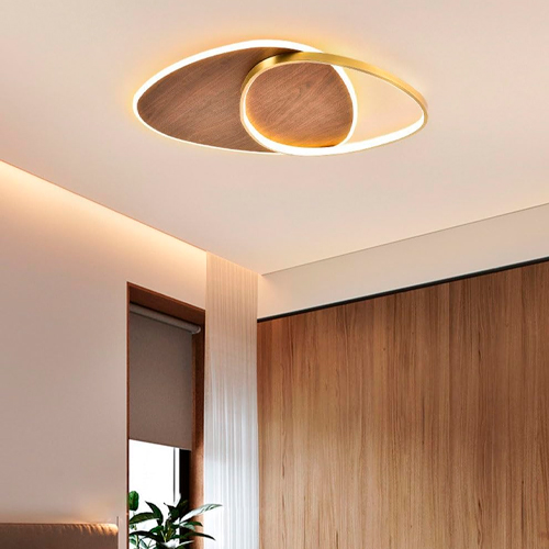 A estética refinada do Plafom CEDRO Gota é realçada pela combinação de cores carvalho com dourado. Esta paleta confere uma sensação de luxo e elegância, tornando-o não apenas uma fonte de luz, mas também uma peça decorativa que agrega charme ao seu espaço.