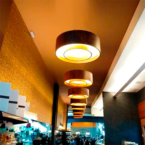 Com grau de proteção IP20, o Plafon Madeira Redondo Aro Central foi desenvolvido para uso exclusivo em áreas internas. Ele é perfeito para locais como: