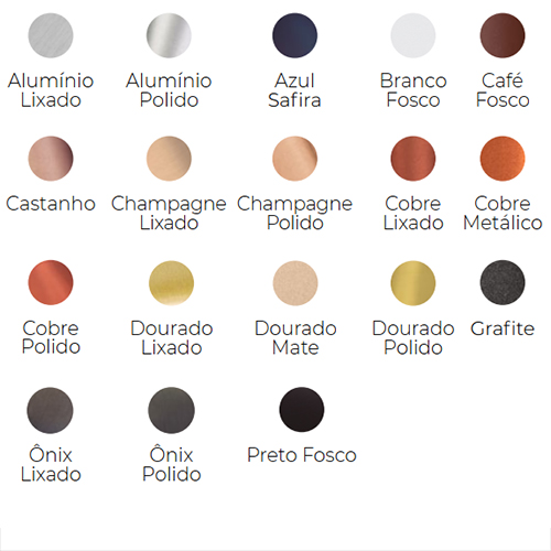 Disponibilidade de Cores: Veja Palheta.