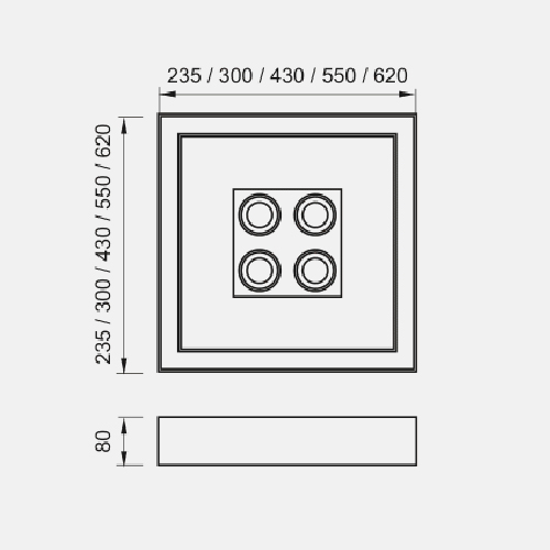 430X430X80 – 4 MR16 / LED 36,6W 3000K 1950 lm