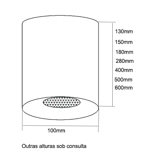 Dimensões (cm): A: 40cm / Ø:10cm.