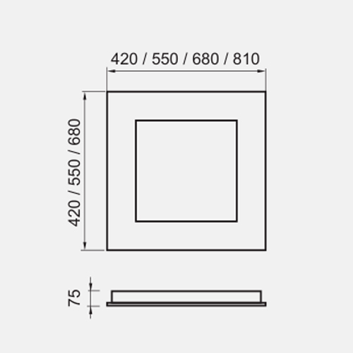 Quadrado 420X420X75 – LED 66,4W – 8635 lm