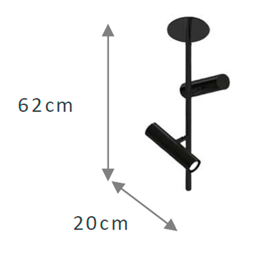 As dimensões do plafon são de 20x10cm, o que o torna compacto e discreto. Sua altura é de 62cm, proporcionando uma presença visual marcante no ambiente. Ele é projetado para ser instalado no teto, proporcionando uma iluminação ampla e uniforme.