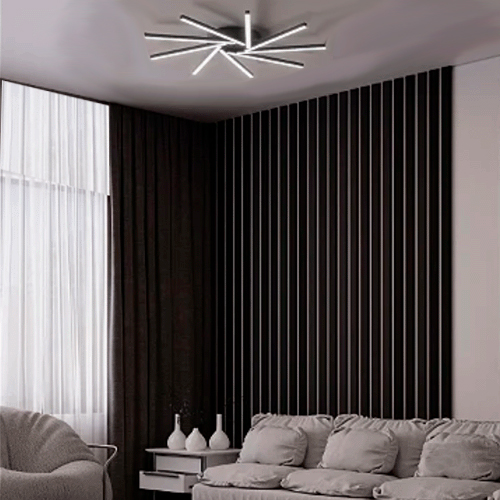 O plafon Spin é fabricado com materiais de alta qualidade, combinando alumínio e acrílico. Essa combinação oferece durabilidade, resistência e uma estética moderna. O acabamento está disponível em duas opções de cores: branco ou preto, permitindo que você escolha a que melhor se adequa à sua decoração.