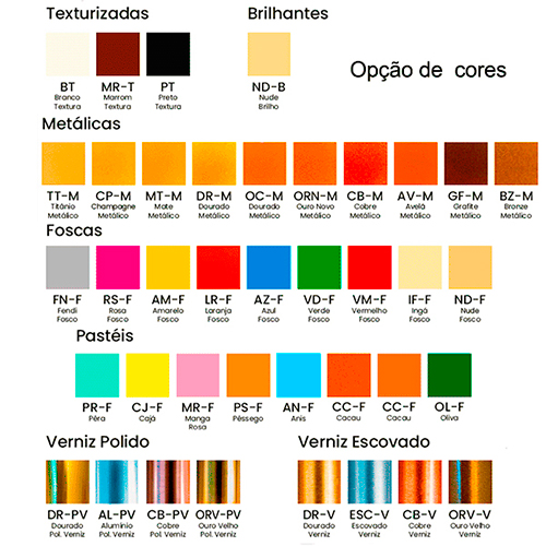 Disponibilidade de Cores: Veja Palheta.