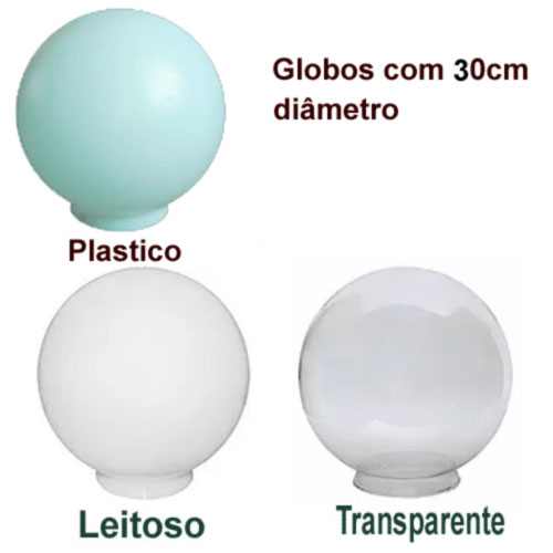 Globo: Boca 15cm / Diâmetro Ø30cm / Vidro Leitoso ou Transparente ou Plástico Leitoso