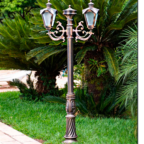 Transforme seus ambientes com a sofisticação e qualidade do Poste de Jardim Sinha Duplo e desfrute de uma iluminação encantadora e funcional. Perfeito para restaurantes, pubs, hotéis, teatros e outros espaços que exijam um toque de classe e eficiência, este produto é a escolha definitiva para quem não abre mão de beleza e durabilidade em suas instalações de iluminação.