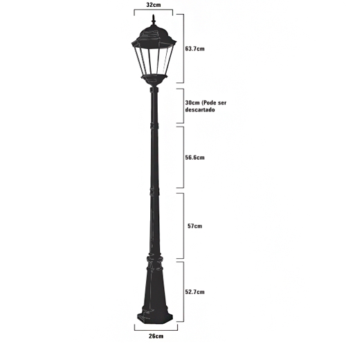 Além disso, a instalação deve ser realizada por um profissional capacitado para garantir a segurança e o funcionamento adequado do produto. Com 12 meses de garantia contra defeitos de fabricação, o Poste Luz Clássico é uma escolha segura e confiável para quem busca qualidade e sofisticação em iluminação externa.