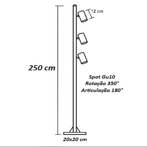Dimensões: A:250cm x Ø20.cm x spot 12cm