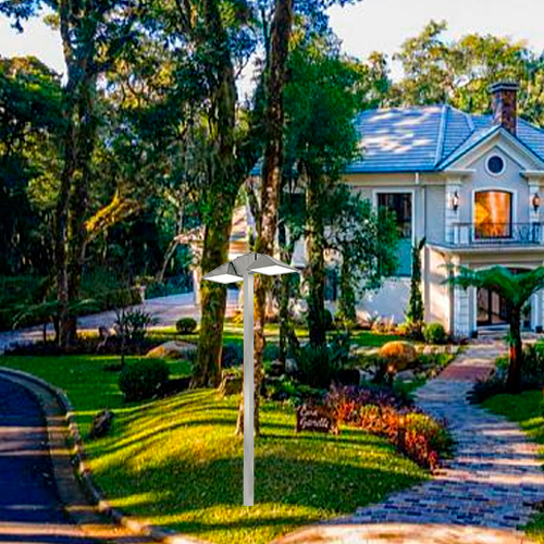 Poste Pétala chanfrada Duplo pode transformar seus projetos de iluminação pública e paisagismo. Fabricado no Brasil, este poste é ideal para iluminar praças, vias públicas, parques, calçadões, áreas de passeio e condomínios, garantindo segurança e estética aprimorada para qualquer ambiente.