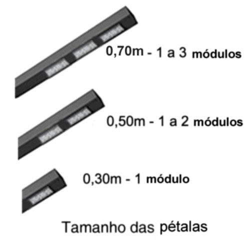 Lâmpada: 2 x Módulos de LED 50W – (3000K), (4000K) e (5700K) (Integrado A pétala)