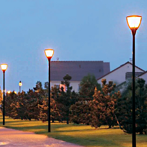 Para iluminação de praças e vias públicas, parques, calçadões, áreas de passeio e condomínios