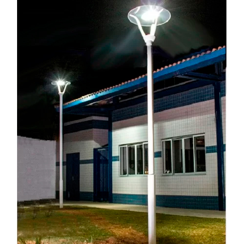 Com uma potência de 50W ou 100W e fluxo luminoso de até 10000lm, este poste oferece opções de lâmpadas LED integradas em três tonalidades: branco quente (3000K), branco neutro (4000K) e branco frio (6000K), permitindo adaptar a iluminação conforme a necessidade e o ambiente. Além disso, seu facho de 120º garante uma ampla cobertura, ideal para iluminar praças, vias públicas, parques, calçadões, áreas de passeio e condomínios.