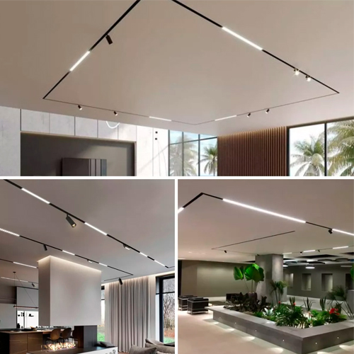 Para começar, o Sistema Mix Line pode ser embutido, sobreposto ou pendente, tornando-o adequado para diversas aplicações. A escolha entre embutir com 40mm ou sobrepor com 30mm permite uma integração perfeita com o design do ambiente. Os perfis estão disponíveis em formato ‘U’, com a opção de abas para instalação embutida, proporcionando flexibilidade no design.
